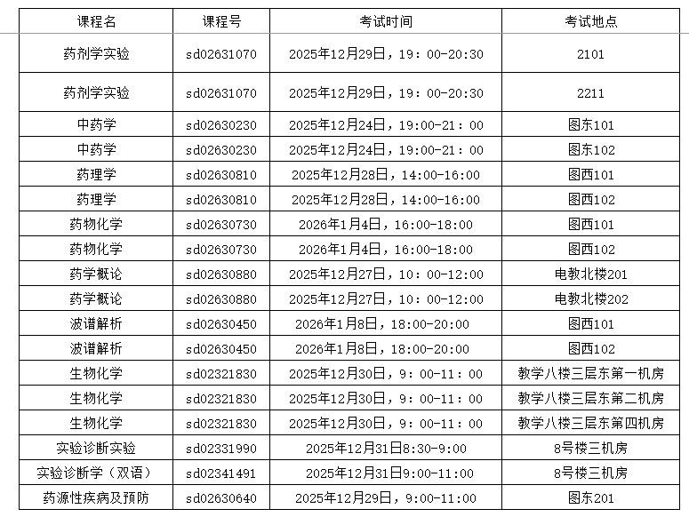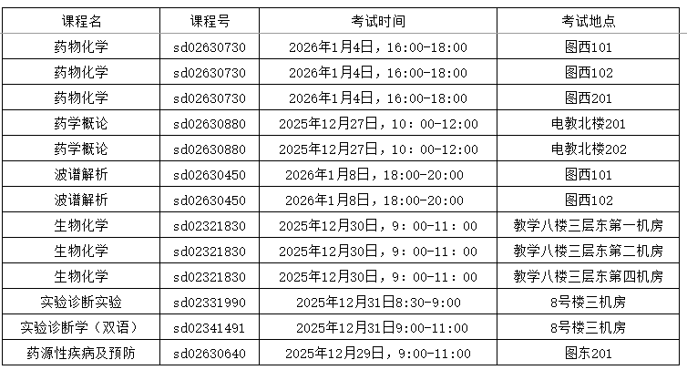 2025-2026-1学期基础医学院【考试周-机考】安排汇总:http://www.lcyxtszy.sdu.edu.cn/info/1050/5403.htm2