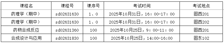 2025-2026-1学期药学院部分考试安排(持续更新)