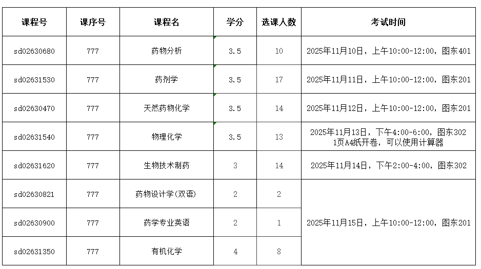 【挂网】药学院777课程考试安排-11.6.xlsx