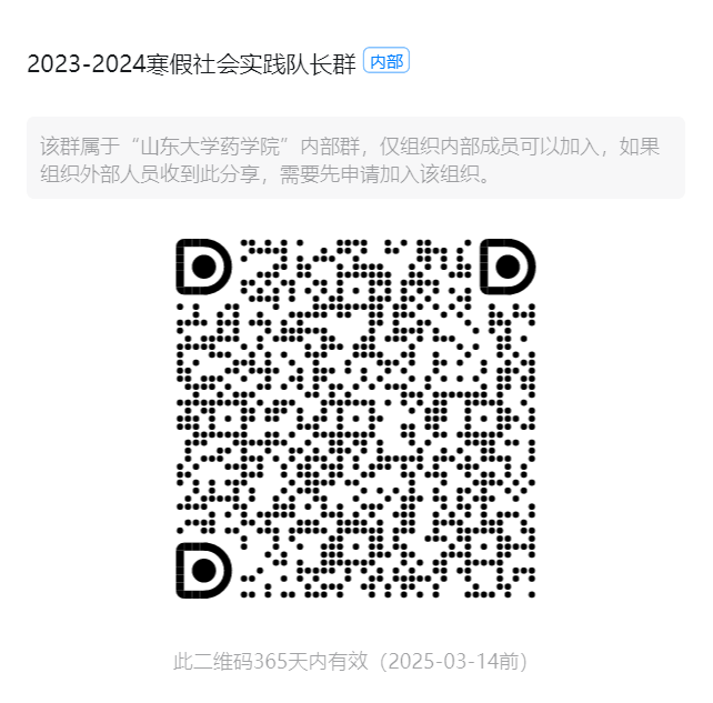 (2)社会实践优秀团队答辩会暂定于3月22日19:00进行,具体答辩地点将于队长群(钉钉群二维码如下)另行通知,团队答辩时间不超过3分钟,请各位队长于3月21日前将答辩PPT发至药学院学生会学术创新实践部公邮yxysheshibu@163.com。