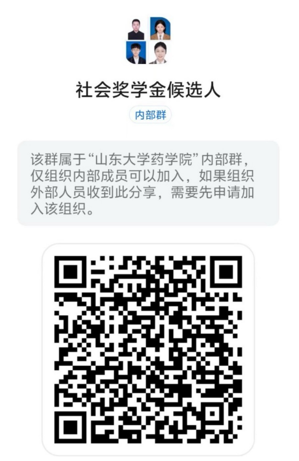 请意向申报各类社会奖学金的同学于10月24日(周五)18:00之前扫描二维码加入钉钉群,以便接收后续通知,过期不候。