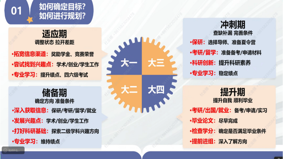 首先,贾双旭以如何“确定目标,做好规划”为重点,围绕大学四年的专业学习、学生工作、实践服务、科研创新和创业竞赛六个方面进行了具体讲解,为新生构建了大学生活的整体框架。