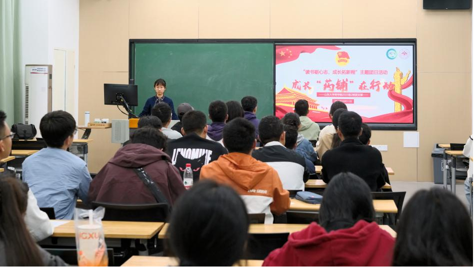 为引导同学们在阅读中感悟奋斗精神,在实践中锤炼成长型思维,10月12日晚7时,药学院2025级2班于理综楼101教室开展了“药贰灵成长药铺在行动”主题团日活动。活动由2025级2班团支书陈庆媛主持,2025级2班全体同学参与。