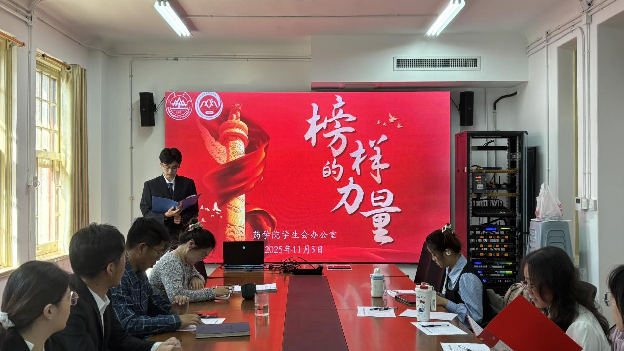 为进一步加强思想引领,传递榜样模范力量,形成奋发向上、互相学习的良好校园风气,11月5日,药学院2025年“榜样的力量”学生年度人物答辩会在景蓝斋212举行,此次答辩由林裕涵担任主持,党委副书记陈国军、团委书记刘晓燕、研究生辅导员付辉以及辅导员助理张琬茹担任评委。