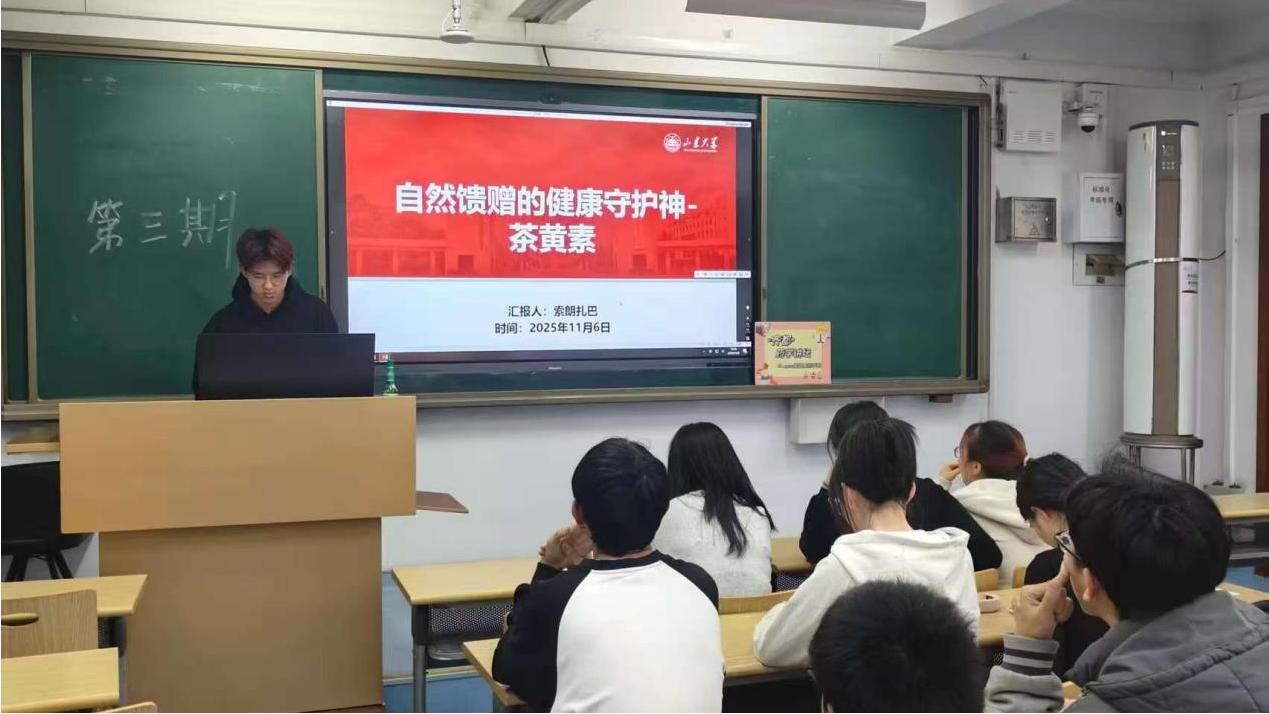 第五位演讲人索朗旺久演讲的题目是《自然馈赠的健康守护神——茶黄素》。他先简略阐明了茶黄素的理化性质,随后针对茶黄素的生物活性、药学价值、应用现状、研究瓶颈等方面进行了剖析。