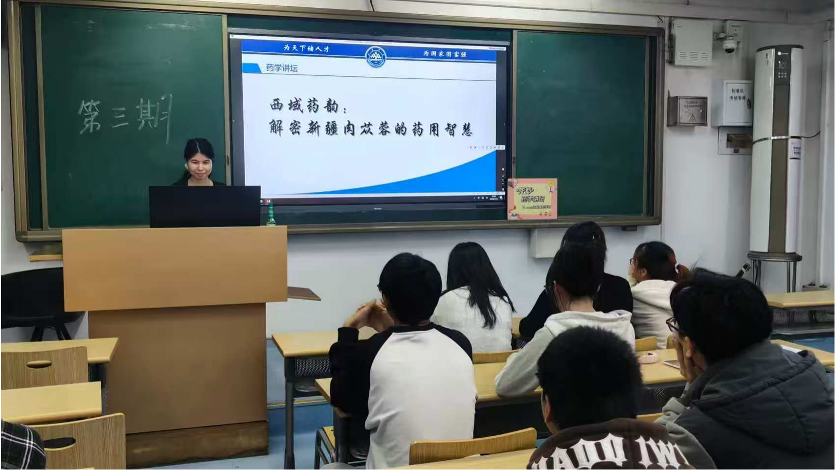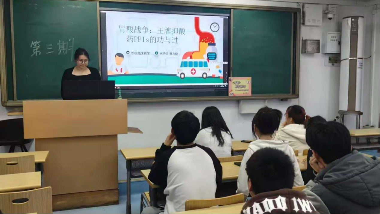 11月20日16时,药学院2023级临床药学班在趵突泉校区图书馆西教室202举办了第三期药学讲坛。本次药学讲坛由王瑶主持,班主任周丽波担任评委,索朗旺久、米热依-赛力健、热则燕-艾合买提、王瑶、索朗扎巴五位同学进行了与药物相关的演讲。