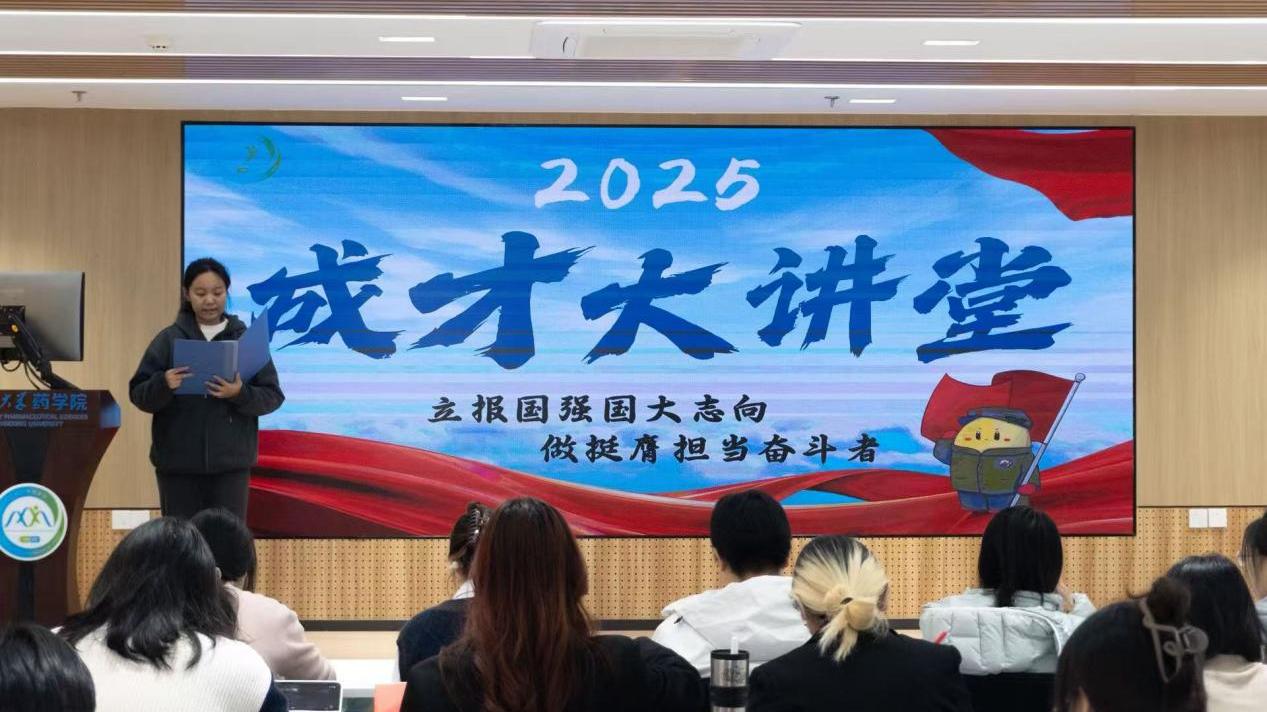 为深入贯彻落实党的二十届四中全会精神,纪念中国人民抗日战争暨世界反法西斯战争胜利80周年,扎实推进新时代立德树人工程,11月27日,药学院在科研楼501组织开展成才大讲堂活动。活动邀请药学院研究生各支部支委和本科生党支部的党员同志担任评委,2024级本科生李潇琪担任主持人。