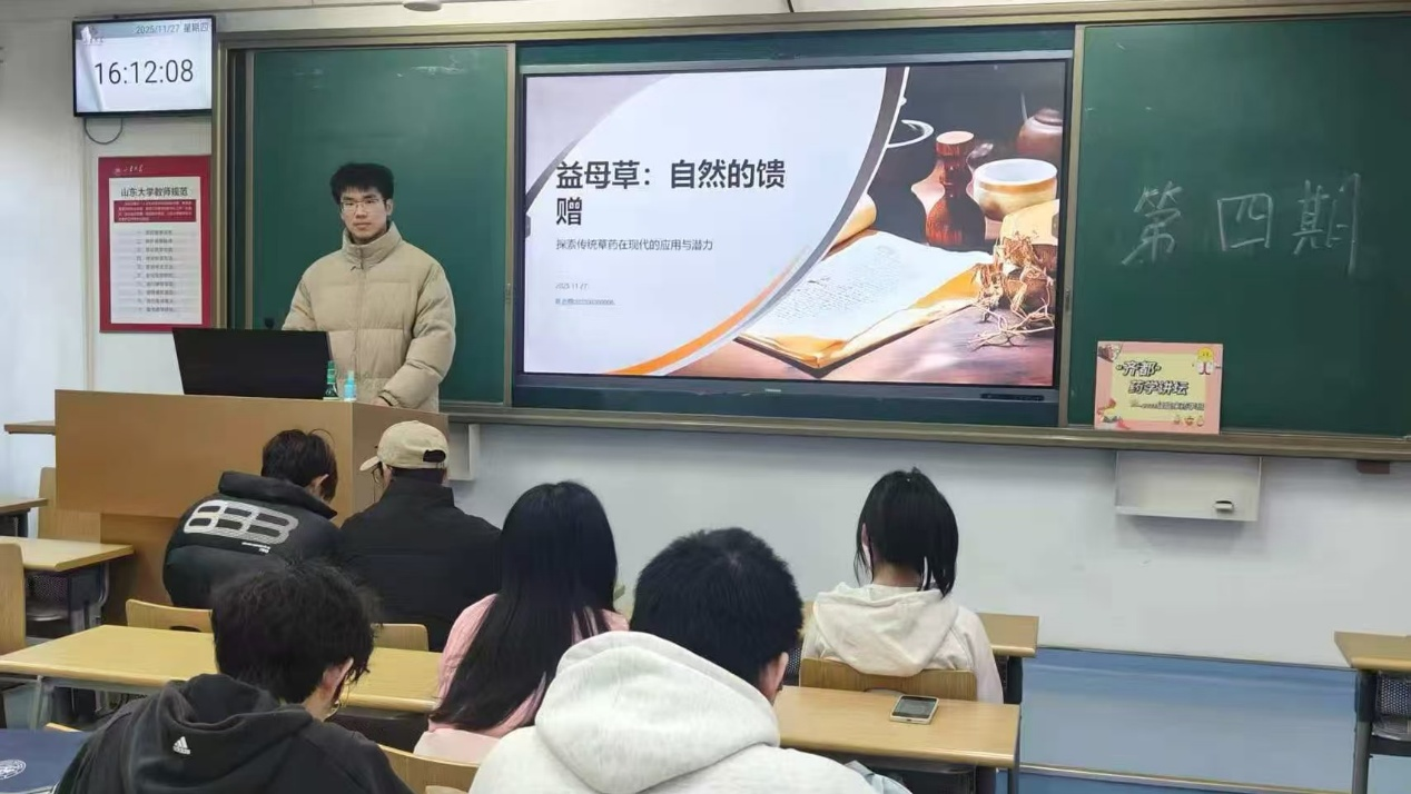 第一位演讲人焦治翔以《益母草》为题,聚焦传统草药益母草,系统介绍其基本特性、药用价值、现代研究进展及未来潜力,深入探讨了其在当代社会的应用与开发前景。