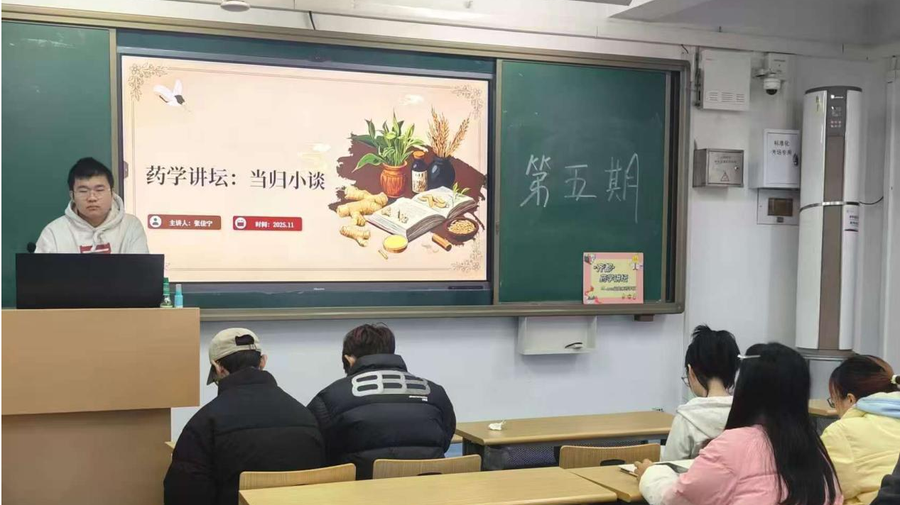 12月4日16时,药学院2023级临床药学班在图西202教室举办了第五期药学讲坛。本次药学讲坛由王瑶主持,班主任周岳担任评委,尼玛扎西、张佳宁、蔡昌志、秦佳慧、张志文五位同学进行了与中草药相关的演讲。