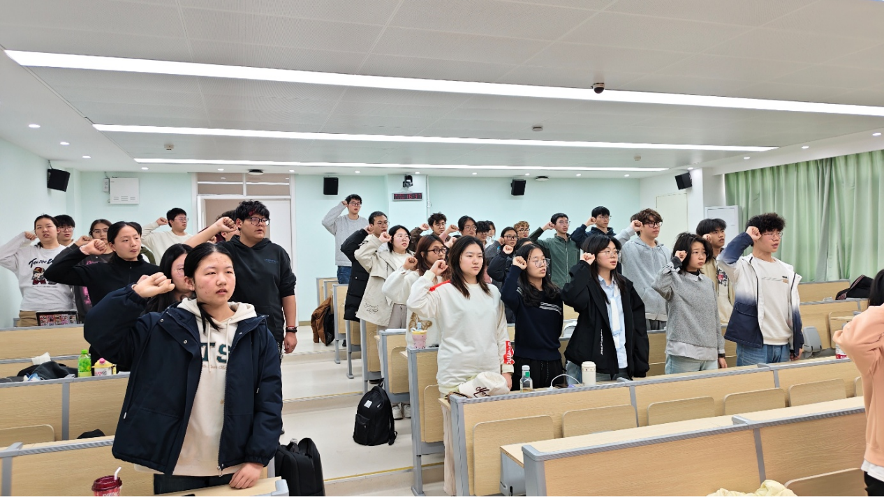 随后,宋颜君对本次组织生活会进行了全面点评。她对会议的规范流程、扎实内容和积极成效给予了充分肯定,并对团员们的思想成长、学习发展和支部建设表达了殷切期望与具体要求,为团支部的未来工作指明了方向。最后,在鲁晓萌的带领下,全体团员高举右拳,庄严宣誓,彰显了团员们不忘初心、牢记使命的坚定决心。
