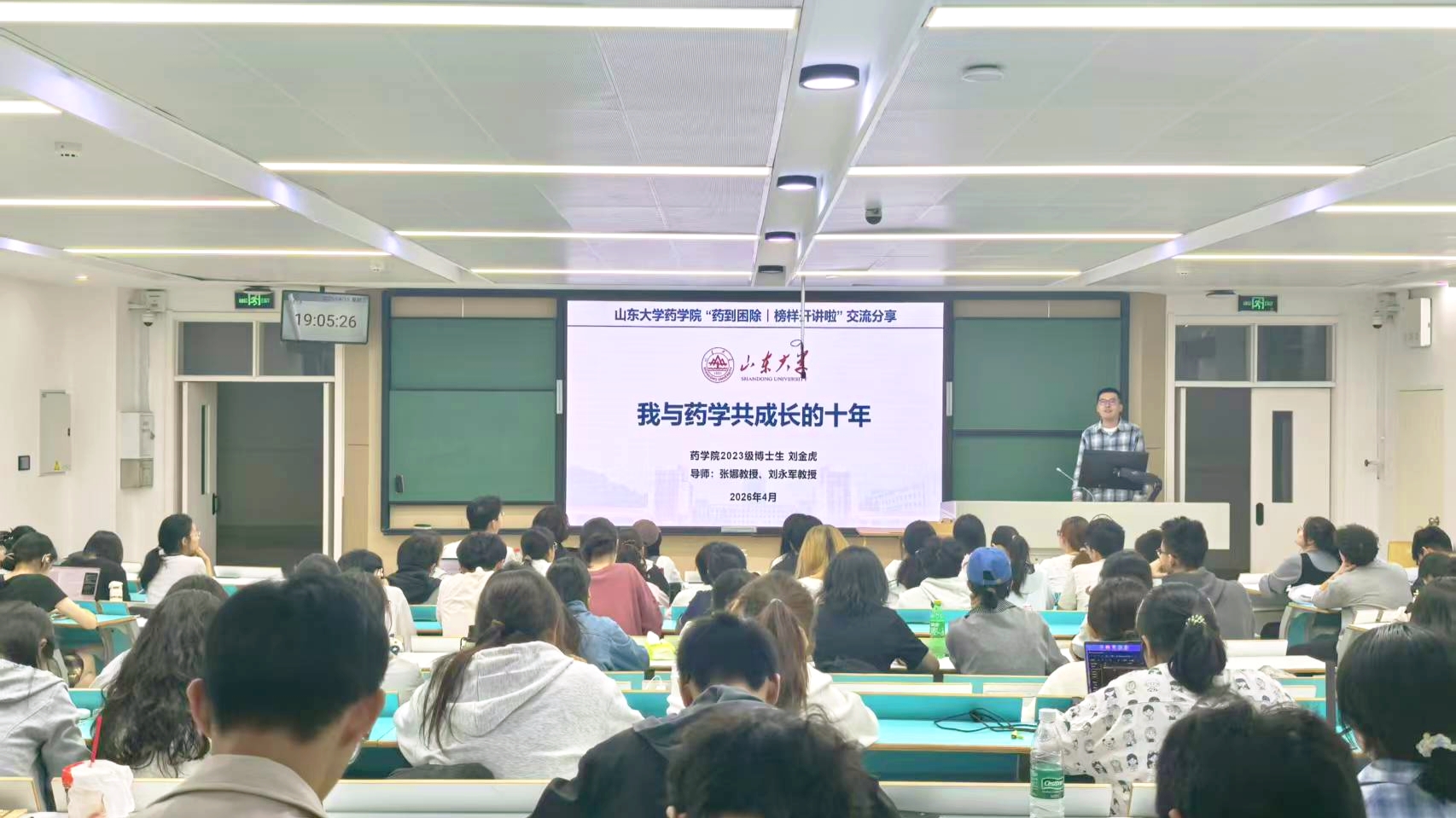 讲座伊始,辅导员刘晓燕介绍了活动内容与目的,并邀请博士研究生刘金虎进行经验分享。随后,刘金虎以“我与药学共成长的十年”为题,结合个人学习与科研经历,从本科阶段基础积累、研究生阶段方向选择及科研实践中的难点与收获等方面展开,讲述了他的阶段性发展心得。在分享过程中,他结合具体事例,就时间分配、文献阅读方法及与导师间的沟通技巧等内容向在场学生提出建议。