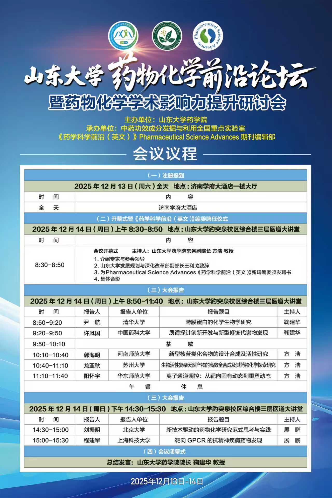 山东大学药物化学前沿论坛暨药物化学学术影响力提升研讨会