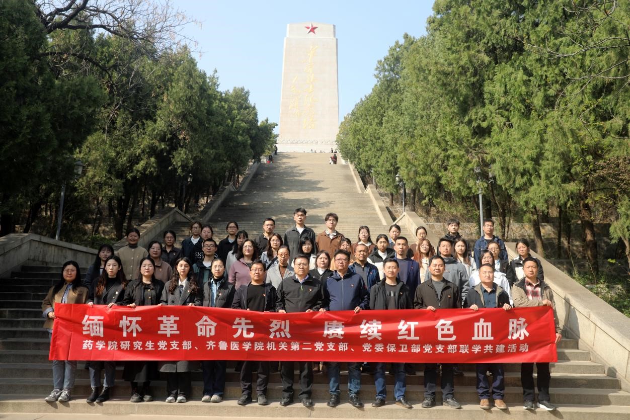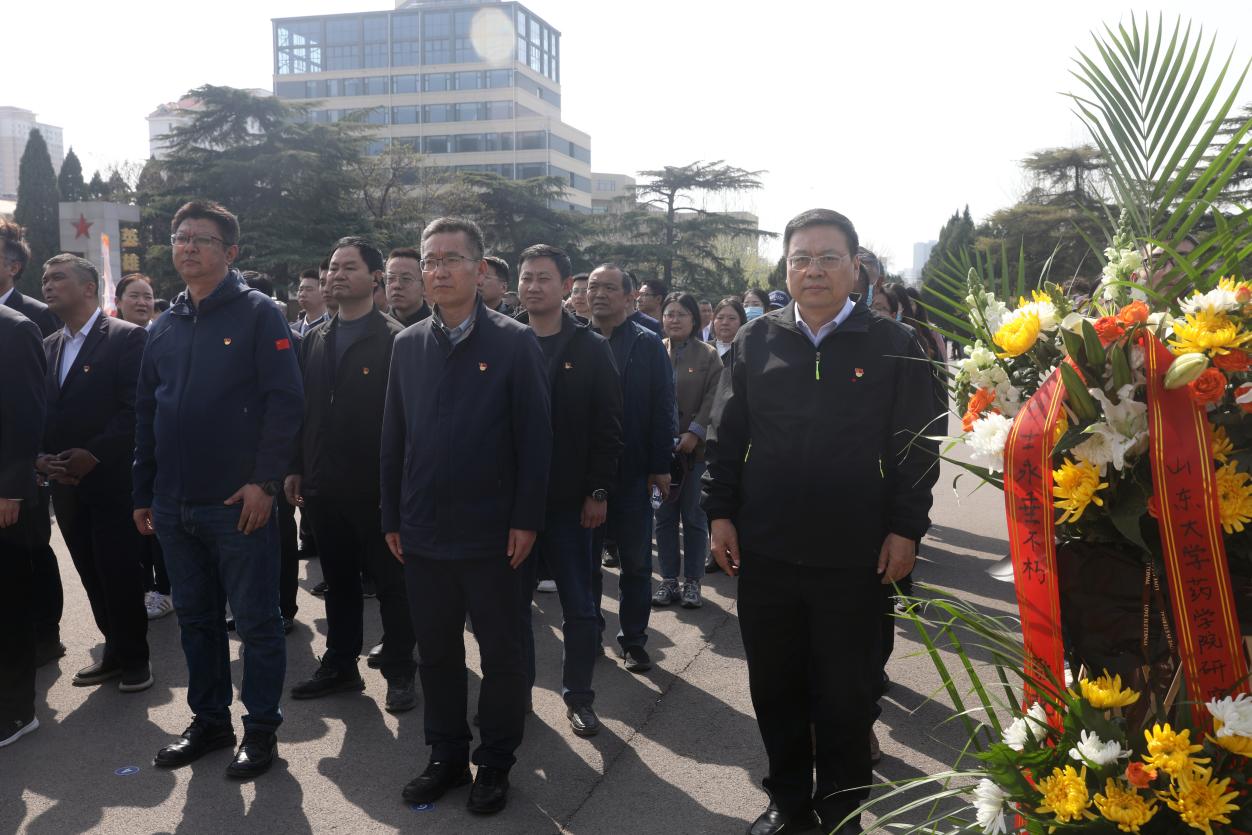 4月3日,药学院研究生党支部与齐鲁医学院机关第二党支部、党委保卫部党支部赴英雄山济南革命烈士陵园联合开展清明祭英烈联学共建活动。安全工作委员会办公室常务副主任兼党委、校长办公室副主任、党委保卫部部长类淑毅,药学院党委书记王秋生,党委保卫部副部长赵明晟,药学院党委副书记李冬等出席活动,支部党员代表共计50余人参加活动,缅怀革命先烈,寄托深切哀思。