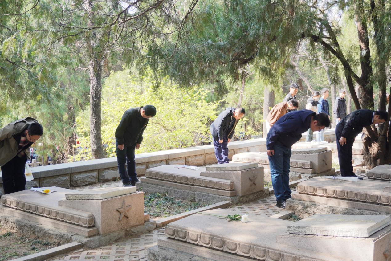 在烈士墓区,全体党员在烈士墓碑前敬献花束,祭奠长眠于此的烈士,向以身许国的英雄表示崇高敬意和深切缅怀。