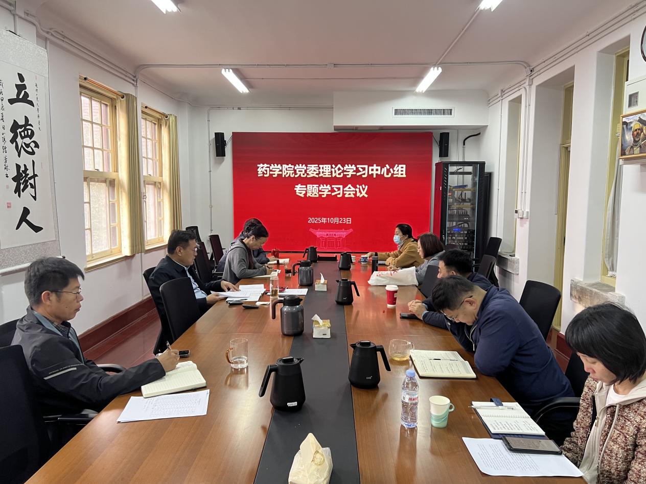 10月23日下午,药学院举行党委理论学习中心组会议,专题学习习近平文化思想、习近平总书记关于健康中国重要论述,《中国共产党思想政治工作条例》。党委书记王秋生主持会议。