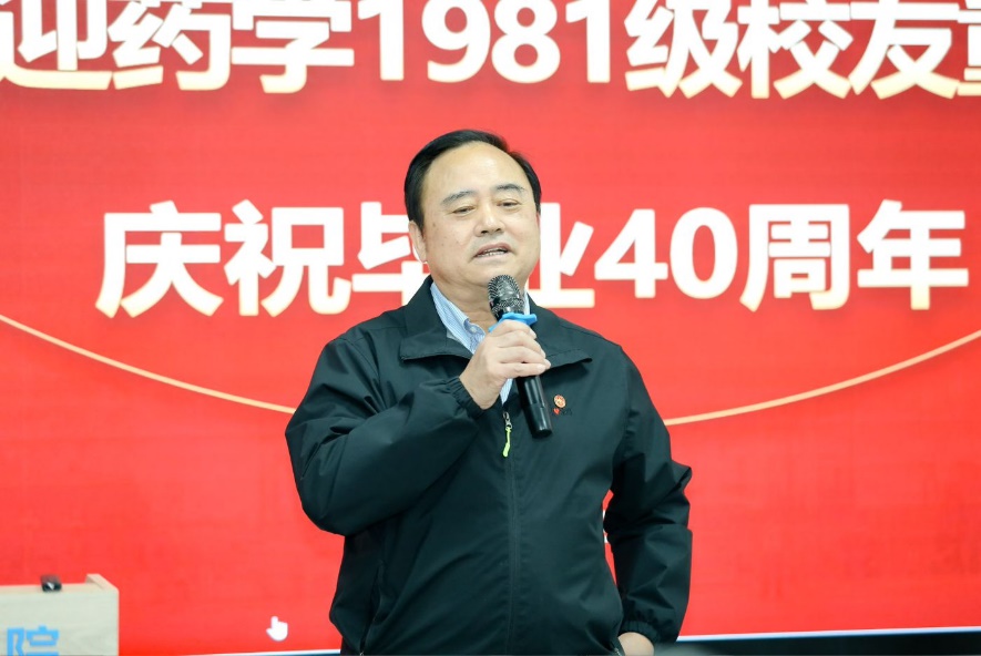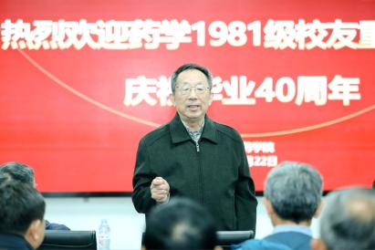 王凤山代表药学院校友会致辞,介绍了校友会发展情况。他表示,与1981级校友情谊深厚,既有研究生学习期间的同窗之谊,又有专业领域内的学术交流,还有工作中的同事之情,更有通过校友会平台维系的紧密联络与合作。校友会在全国各地建立“校友之家”,为校友们搭建起沟通交流、资源共享的平台,未来将继续发挥桥梁纽带作用,助力校友发展,助推学院发展。