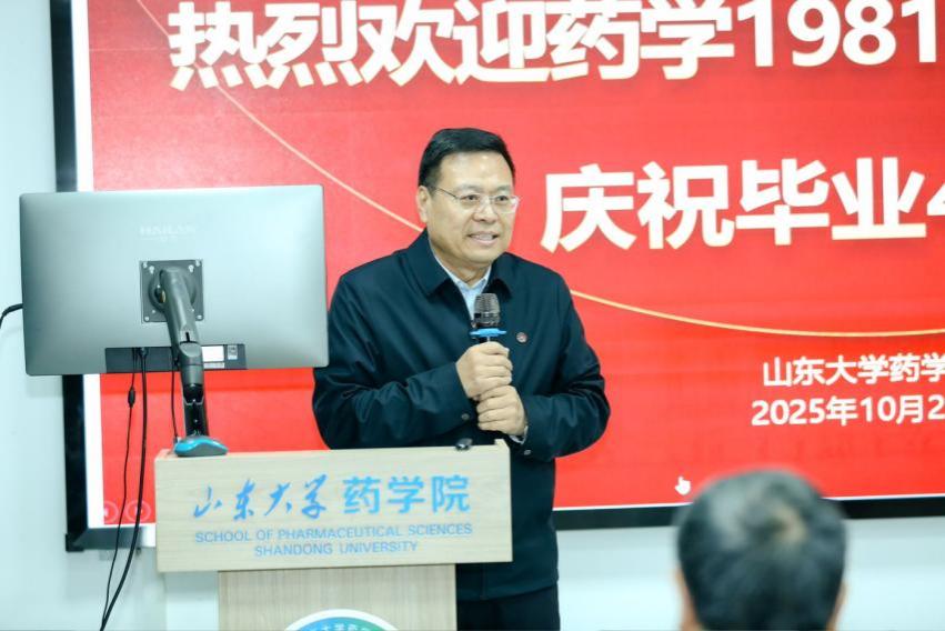王秋生表示,2025年是意义非凡的一年,不仅是1981级校友毕业40周年,更是山东大学药学学科创建105周年、药学系重建54周年以及山东大学建校124周年。在这样特殊的时刻,校友们的归来为学院增添了更多的喜庆与荣光。他高度赞扬了1981级校友们毕业40年间,在医药研发、临床药学、监管科学等各个领域取得的突出成就。他希望校友们能常回家看看,继续为母校、母院的发展建言献策、贡献力量。