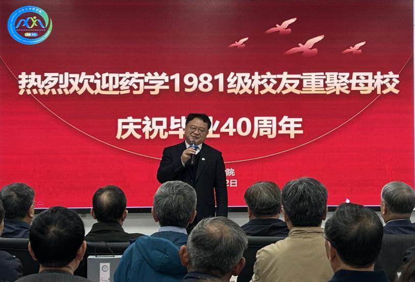 1981级学生辅导员陈晓阳老师在致辞中表示,站在熟悉的校园里,面对昔日的学生,他感慨万千。他深情回顾了40年前与同学们朝夕相处的点点滴滴,寄语每位校友,要作为医药领域的资深从业者,将积累的宝贵经验与智慧传承给下一代医药人,在新时代的医药事业发展浪潮中勇担使命、贡献力量。