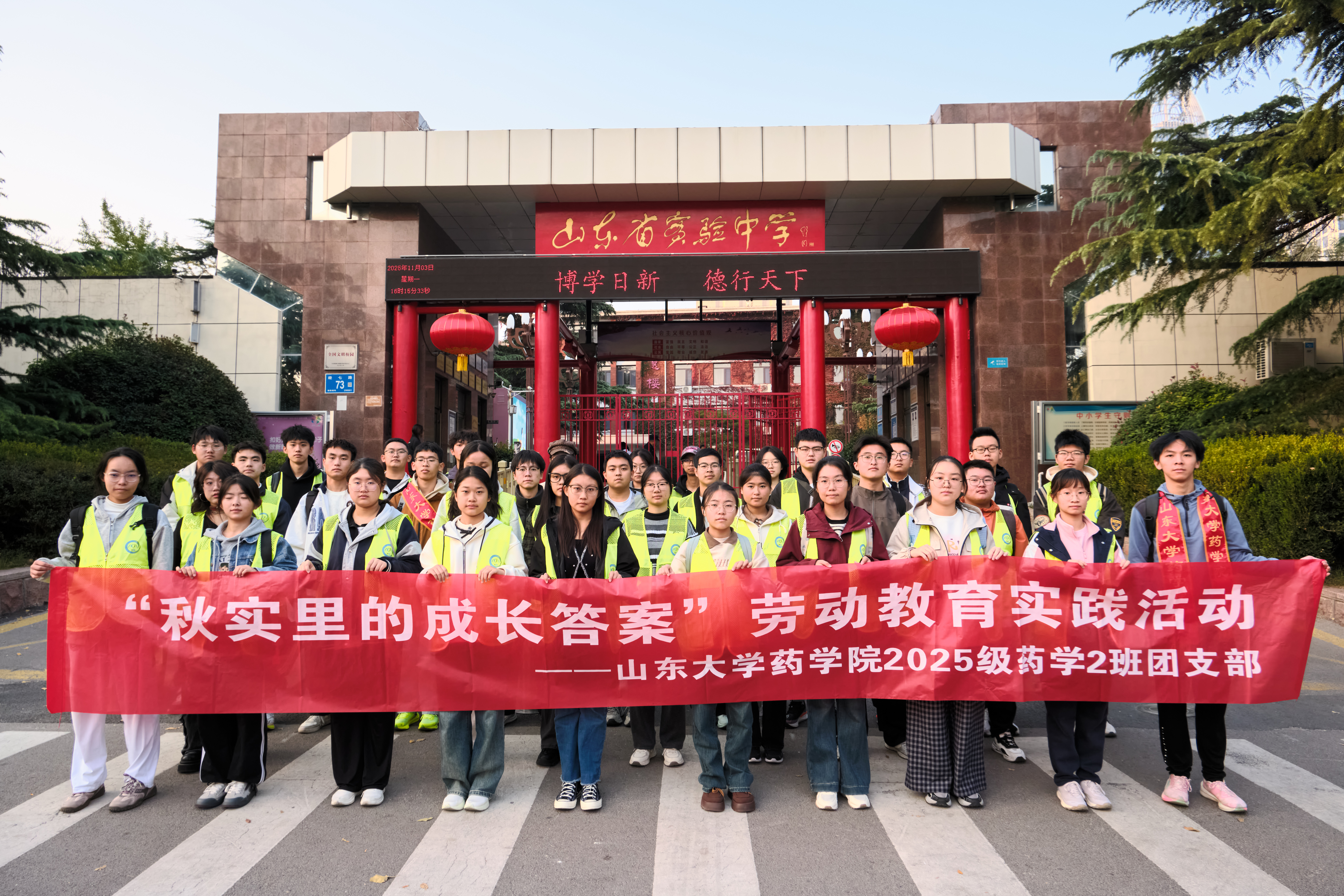 为传承中医药传统文化,拓展劳动教育方式方法,11月3日下午,药学院2025级本科生在学院王海钠、郝国祥两位老师的带领下走进山东省实验中学,开展“药韵探香,药食同行”劳动教育实践活动。