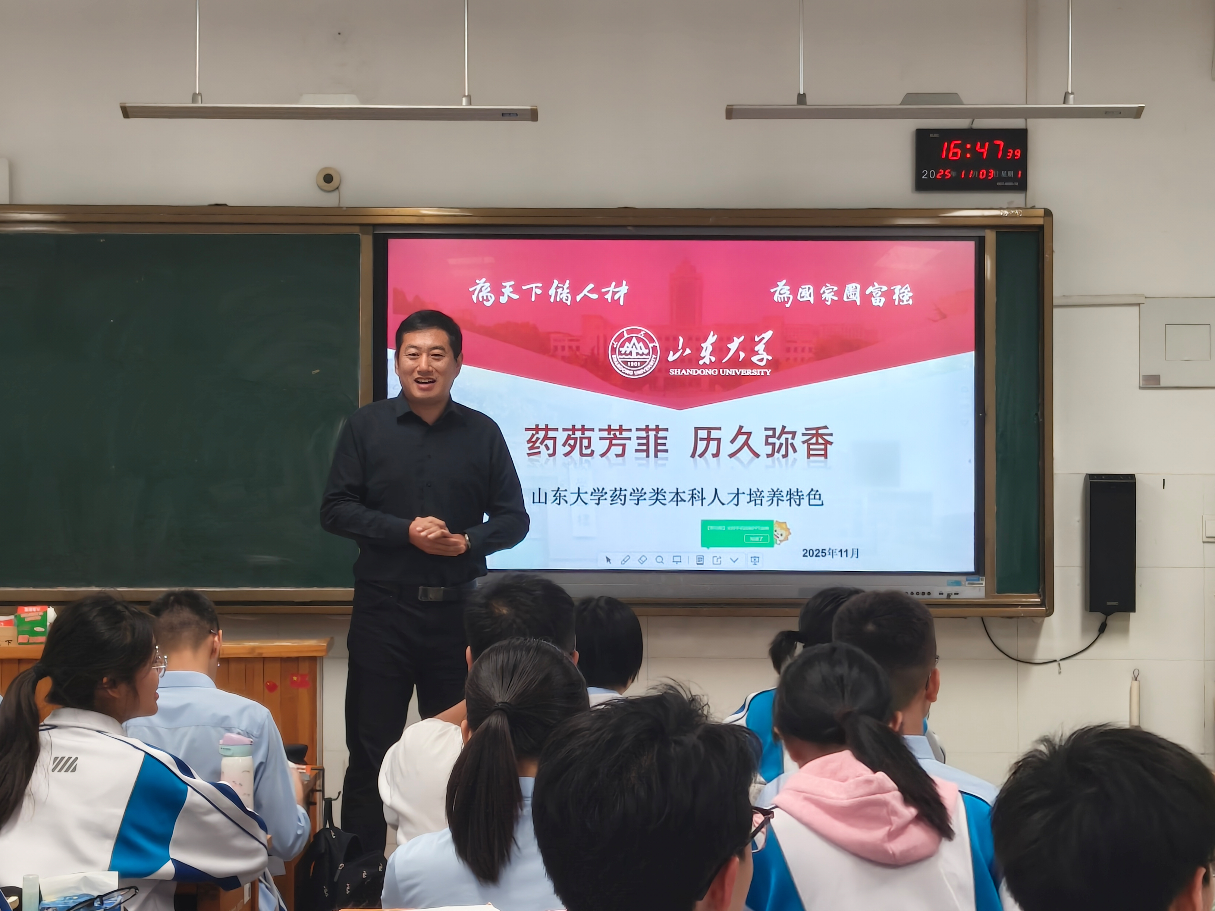 实践活动前,王海钠和郝国祥向山东省实验中学的同学们详细介绍了山东大学药学院的历史沿革、学科特色、师资力量、科研成果以及丰富多彩的校园文化生活,客观呈现了药学领域的广阔前景与独特魅力,有效激发了在场高中学生对药学专业的浓厚兴趣。