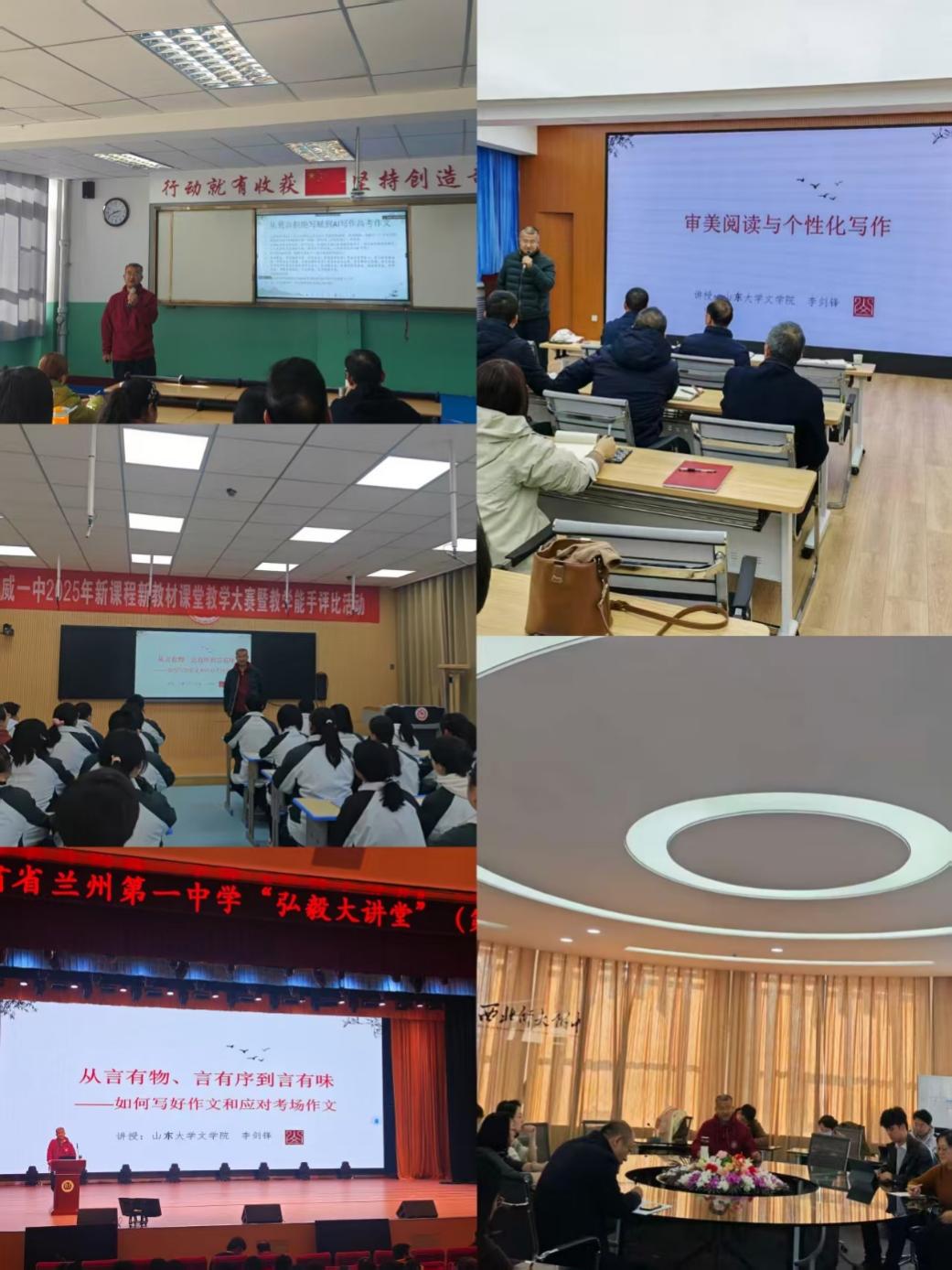 张天德教授作题为“新高考数学的研究与对策”的专题讲座。他结合多年教学与研究经验,深入分析了新高考数学的命题趋势和备考策略,并进行现场答疑。讲座结束后,张天德教授还向各中学赠送了系列数学图书,助力中学数学教育资源的丰富与提升。李剑锋教授以“从言有物、言有序到言有味”为题作指导讲座。他从写作的基本要素入手,通过生动案例和互动环节,分享提升写作逻辑性和文采的实用技巧。