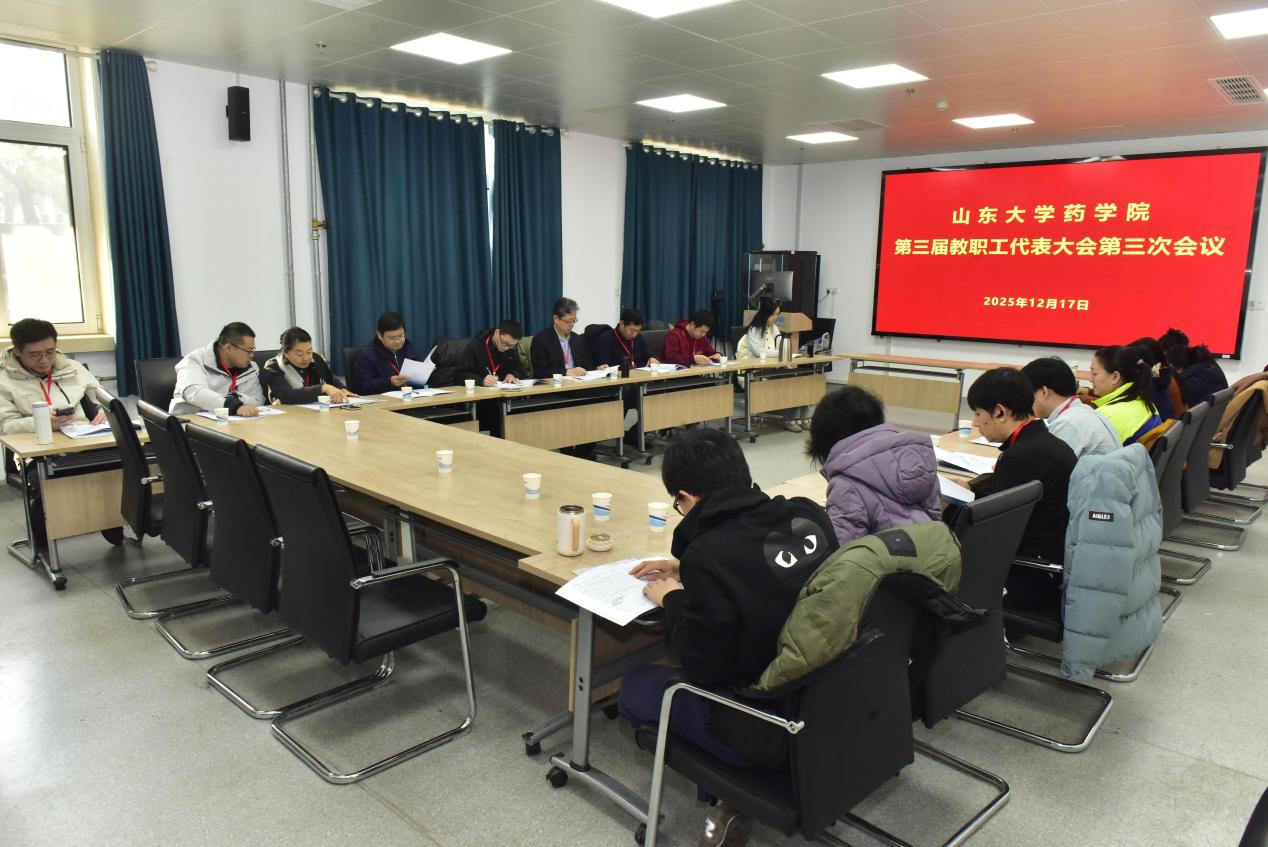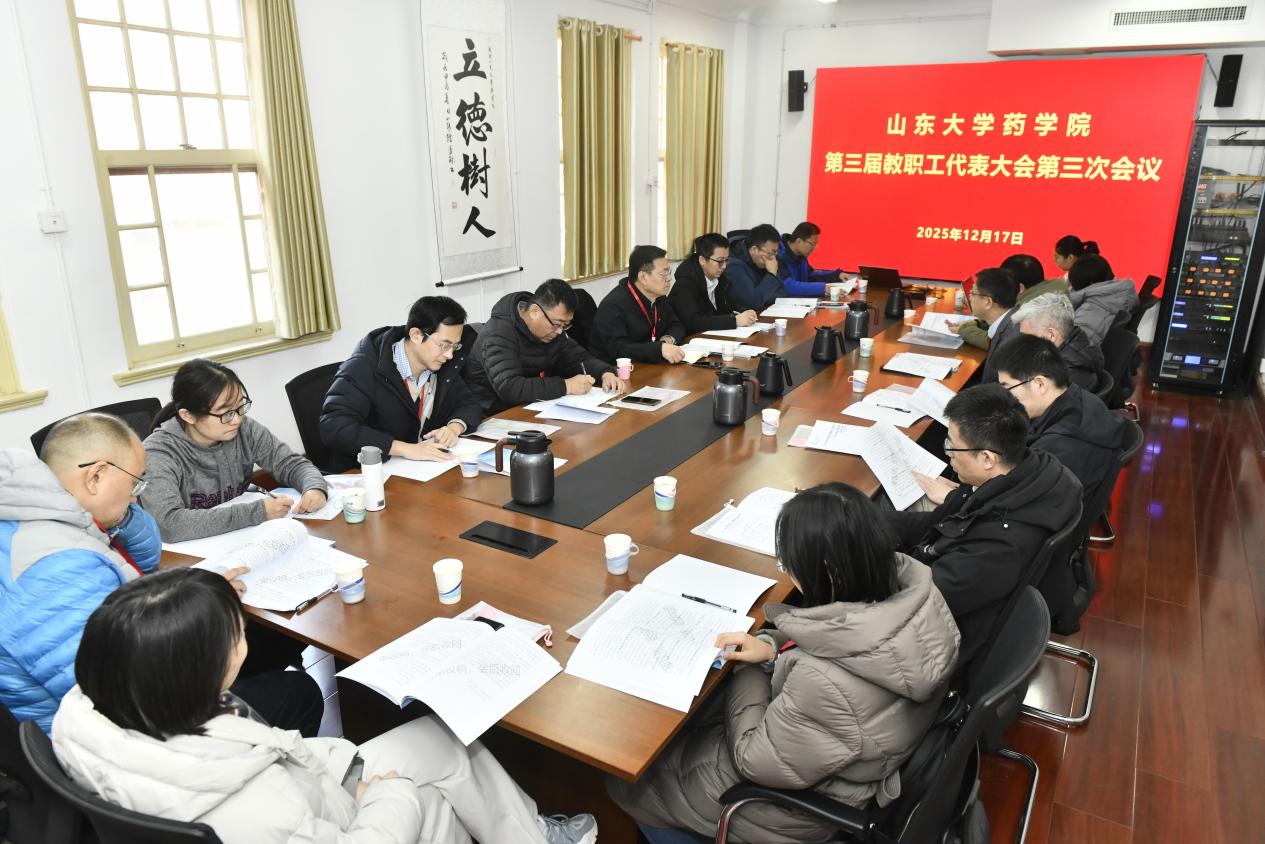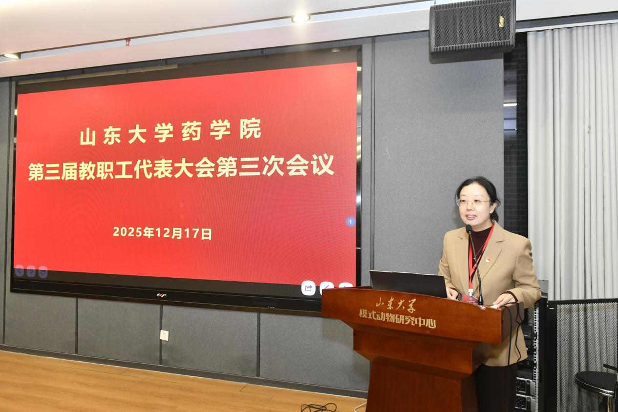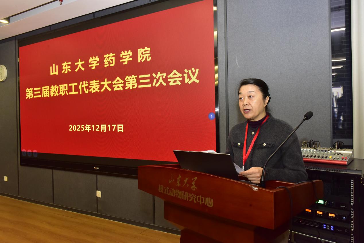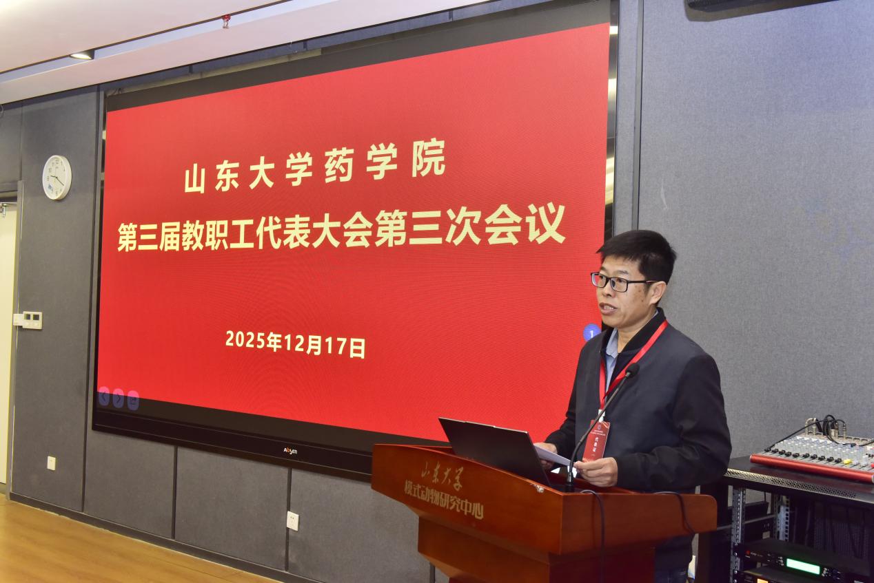 王秋生在致辞中表示,三届二次教代会以来,药学院在校党委的坚强领导下,学院事业发展成效显著,在基层党建、学科建设、人才引育、教育教学、科技创新、保障条件、管理效能等方面取得了丰硕成果。本次大会于“十四五”圆满收官、“十五五”开启新章之际召开,是贯彻落实教育强国建设三年行动计划和学校全面图强三年行动方案开局起步期召开的一次重要会议。希望以本次大会为契机,充分凝聚师生共识,广泛汇集民意民智,全院上下共同谋划学院“十五五”事业发展规划,以更高的站位、更大的格局、更开放的视野、更创新的精神、更扎实的作风,为早日实现药学院发展蓝图而团结奋斗。