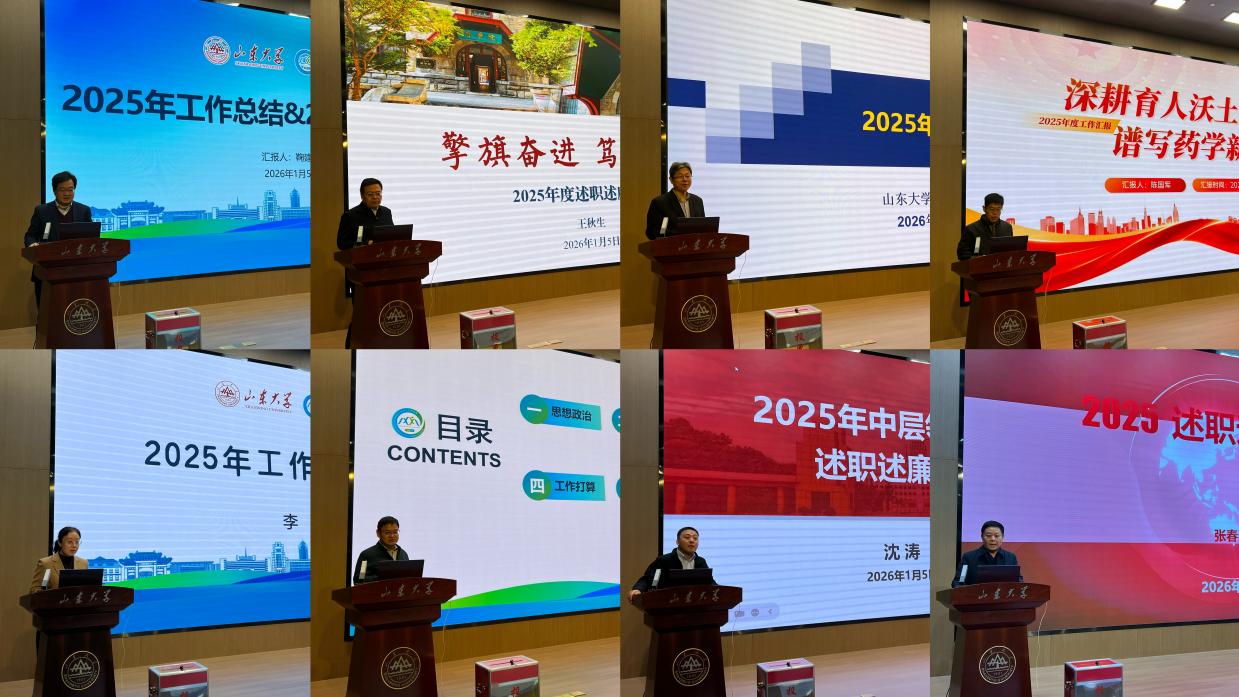 1月5日上午,药学院召开2025年度领导班子和领导人员述职考核评议会。学院党委书记王秋生主持会议,院长鞠建华代表学院领导班子述职。学院全体教职工参加会议。