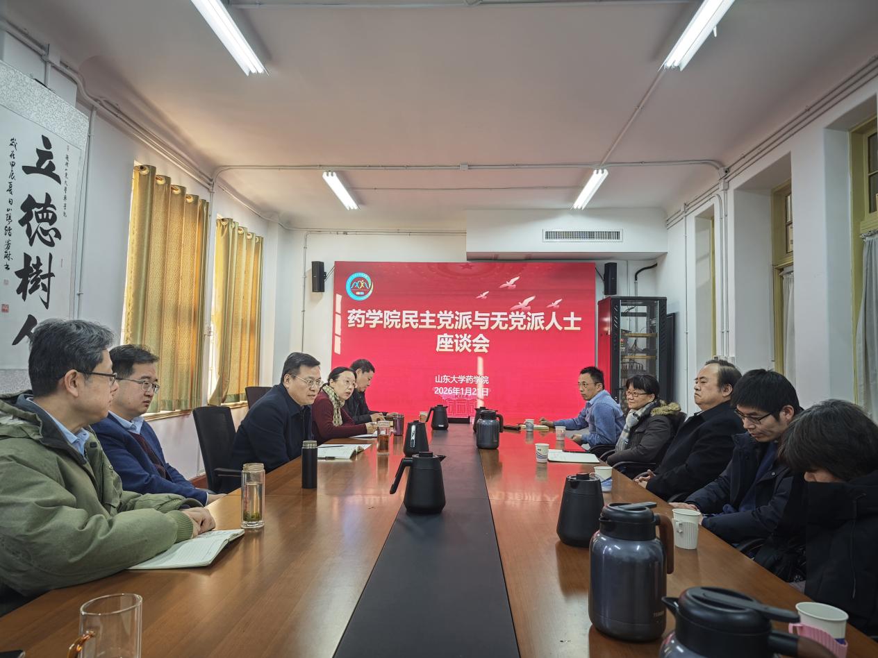 1月21日,药学院召开民主党派和无党派人士座谈会。学院院长鞠建华、常务副院长方浩等领导班子成员出席会议,各民主党派及无党派人士代表参加座谈。学院党委书记王秋生主持会议。