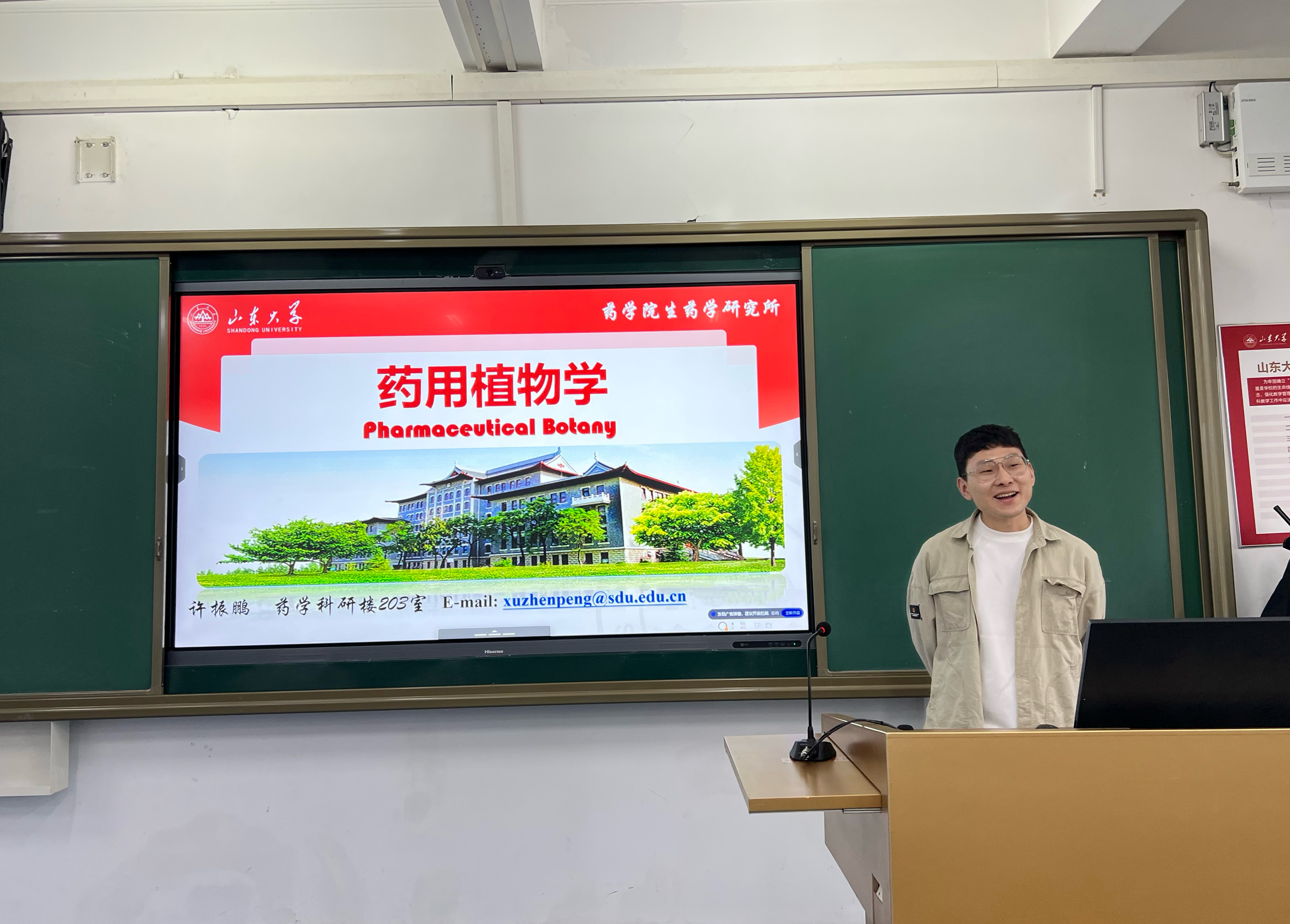 青年教师许振鹏在《药用植物学》课堂从容开讲新学期第一课。台下学生专注聆听、认真记录,课堂氛围轻松而专注。