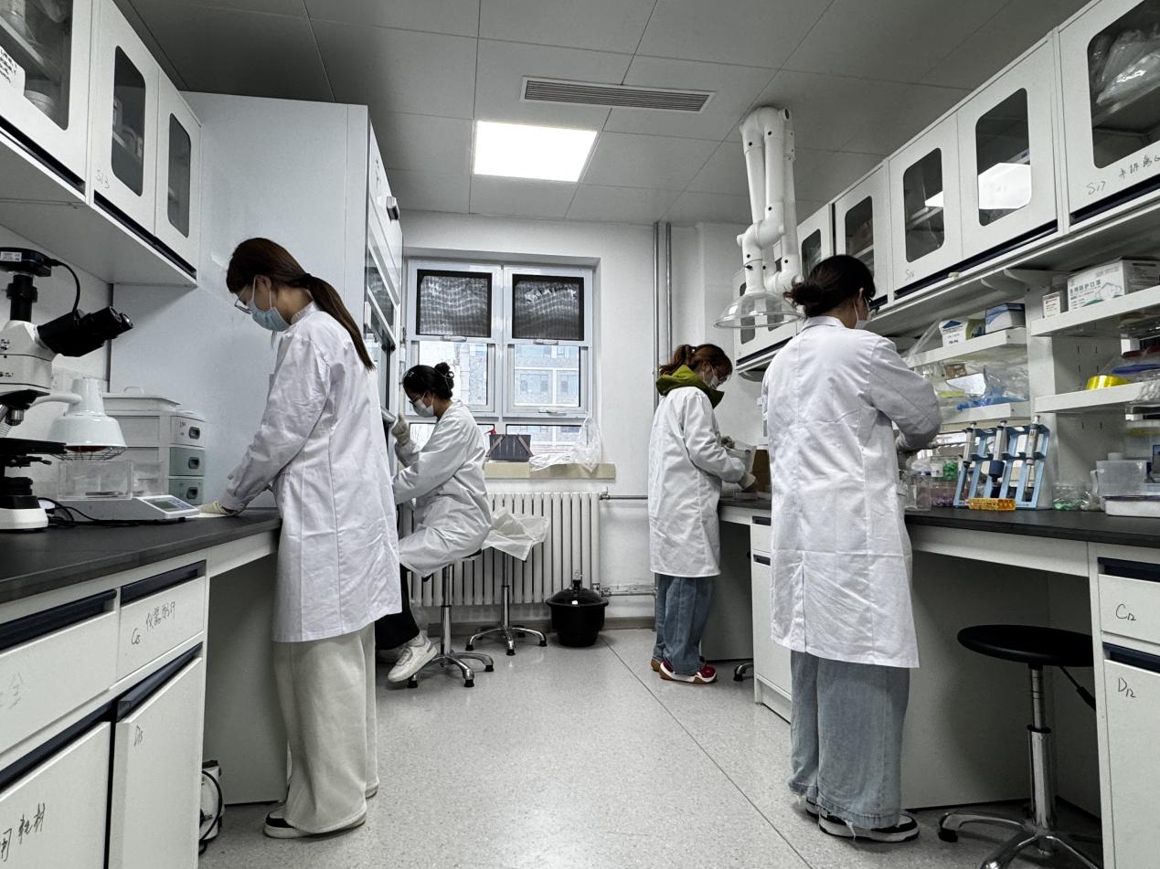 药厂楼内,学生在实验仪器前穿梭忙碌,或调试参数,或观察数据,各自沉浸在有条不紊的实验中。