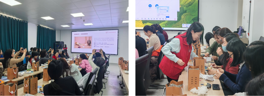 山东中医药大学附属医院药学部专业药师、山东大学药学院2019级硕士毕业生刘昱彤以“中医药之美:守护女性健康与容颜的千年智慧”为题,从中医理论出发,围绕女性生理特点,从肌肤养护、气血调理、情绪舒缓等方面,挖掘中医药在守护女性健康与容颜中的千年智慧,结合经典本草方剂与现代养生理念,为女教师们分享了简单实用的日常养生技巧,引导大家树立“未病先防”的健康理念,在忙碌的工作生活中做好自我关怀,以健康的体魄、饱满的状态投身教育事业。